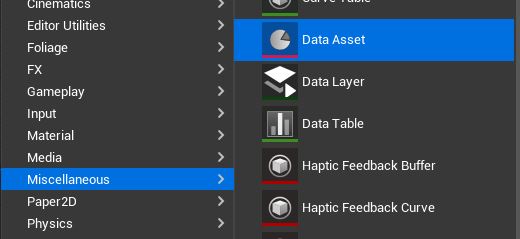 In the editor create technology by right clicking into the content browser and selecting Miscellaneous > Data Asset.