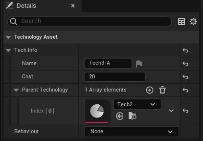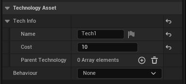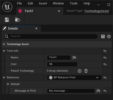 We will create a subclass of UDataAsset and add some basic properties which defines our technology. We use separate structure so we can easily pass it as a parameter in our functions if we would need to but you can also add the properties directly to the UTechnologyAsset.